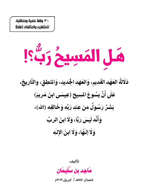 هل المسيح رب؟ : كتاب باللغة العربية، احتوى على ثلاثين وقفة علمية ومنطقية للمثقفين والمثقفات، تثبت بطلان مقولة: إن المسيح رب.