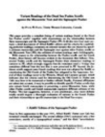 Variant Readings of the Dead Sea Psalms Scrolls against the Massoretic Text and the Septuagint Psalter
