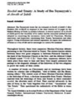 Tawhid and Trinity: A Study of Ibn Taymiyyah’s al-Jawab al sahih