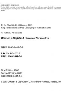 Women's Right in Islam The purpose of this book is to explain to the reader in as concise a manner as possible the basic rights of women in Islam with an awareness that much could be written in the days and years to come.