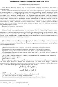О переводе свидетельства «Ля иляха илля Ллах» В наши дни все мы являемся свидетелями того, что многие переводчики арабской литературы об исламе и также те, кто пишет какие-то статьи об исламе; переводят великое свидетельство «Ля иляха илля Аллах» как «нет бога (или божества), кроме Аллаха».