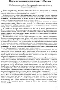Посланники и пророки в свете Ислама Ислам предписывает каждому обязательно верить в посланников и пророков Всевышнего Аллаха. Это является одним из основополагающих и самых важных столпов веры, о чем свидетельствуют Коран из Сунна.