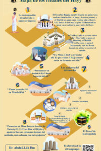 Mapa de rituales del Hajj en 18 idiomas