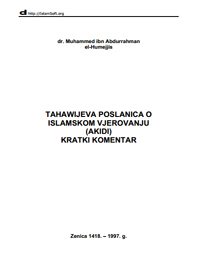 Komentar Tahavijeve poslanice Pomen pojašnjenja akide ehli sunneta vel džemata na mezhebu učen ...